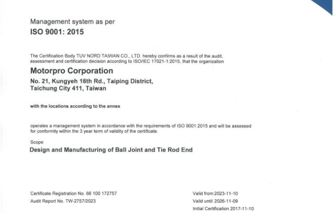 In line with ISO revisions, Motorpro updated its quality management system to comply with ISO9001:2015 standards.